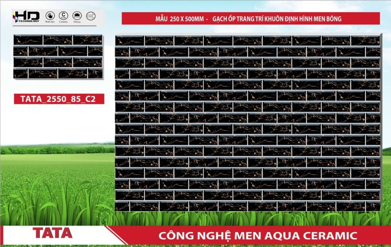 Gạch ốp trang trí 25x50cm khuôn định hình, men bóng (Glossy). Tiên phong trong công nghệ 4.0 - Công nghệ AQUA CERAMIC.
