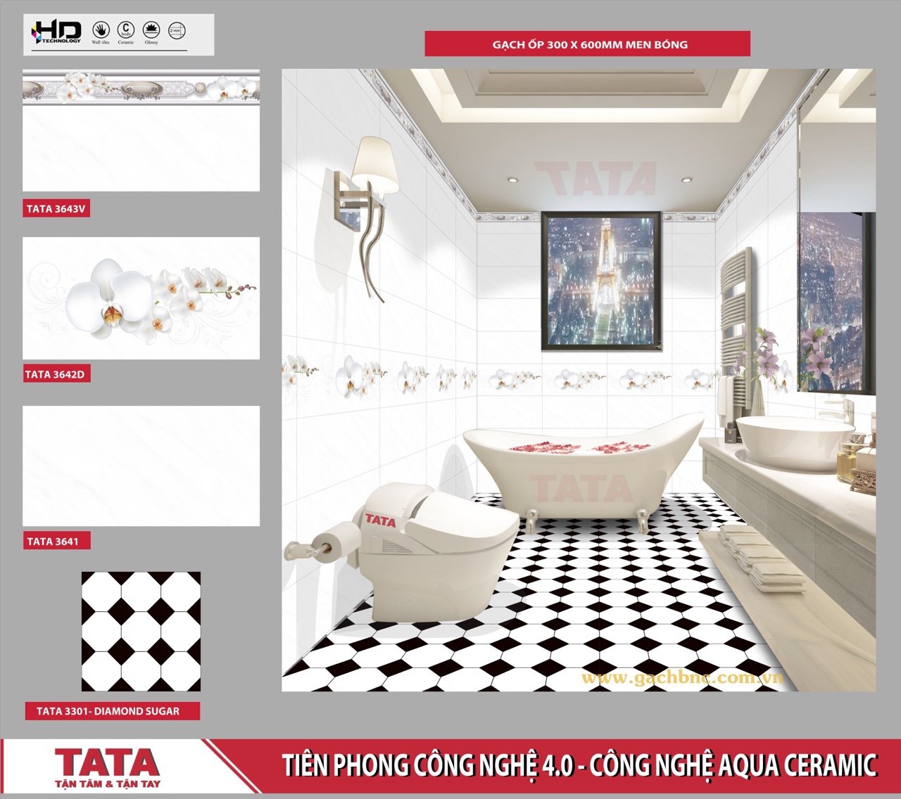 Gạch ốp tường 30x60cm men bóng (Glossy). Tiên phong trong công nghệ 4.0 - Công nghệ AQUA CERAMIC.